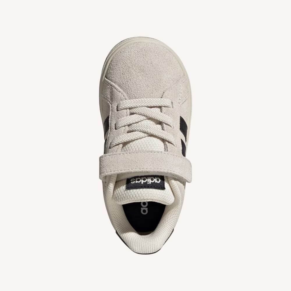 Le Grand Court 2.0 sono realizzate con una suola ultrasoft e una tomaia in similpelle liscia che è delicata sui piedi dei più piccoli. Le chiusure a strappo completamente regolabili rendono queste scarpe facili da indossare e togliere durante gli incontri di gioco o i momenti di tranquillità a casa.