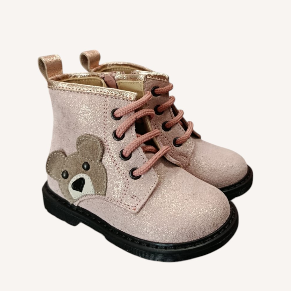 Le scarpe primi passi Rossano sono il perfetto connubio tra confort e stile! Scarpe artigianali realizzate in Italia tutte con materiali al 100% made in Italy. Presentano una tecnologia barefoot progettata per offrire una maggiore comodità con la suola flessibile e tallone sostenuto. Realizzate in pelle effetto glitter rosa con orsetto ; presentano una cerniera laterale per favorire la comodità e lacci tono su tono. Hanno la suola antiscivolo.
