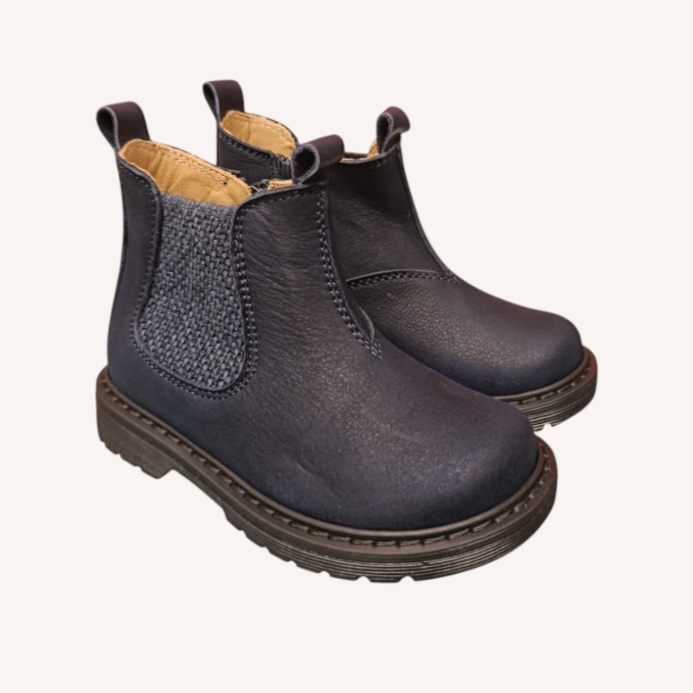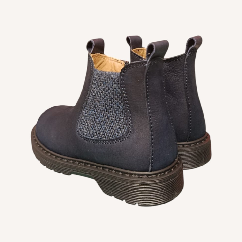 Le scarpe primi passi Rossano sono il perfetto connubio tra confort e stile! Scarpe artigianali realizzate in Italia tutte con materiali al 100% made in Italy. Presentano una tecnologia barefoot progettata per offrire una maggiore comodità con la suola flessibile e tallone sostenuto. Realizzate in pelle blu navy con dettagli in stoffa blu; presentano una cerniera laterale per favorire la comodità. Hanno la suola antiscivolo.
